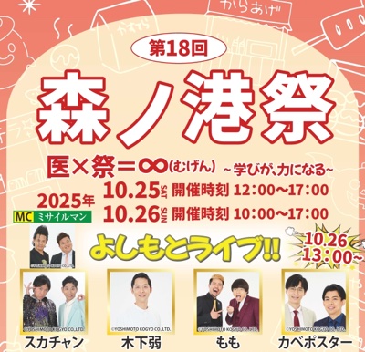10月25日(土)、26(日)に実施する第18回森ノ港祭(大学祭)の実施企画が決定しました!